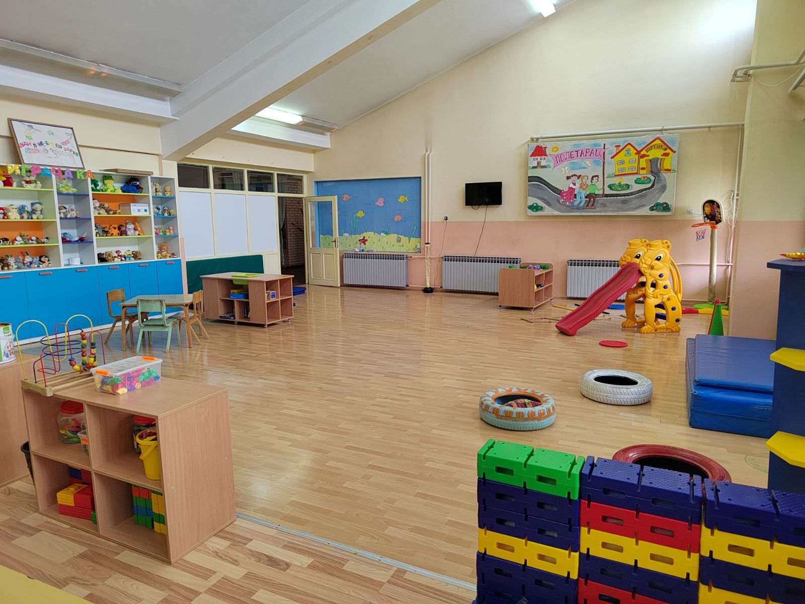 Шесту годину за редом, развијамо дечји дух и тело кроз програм „Буди прав-бићеш здрав“. Фискултурна сала је опремљена средствима и реквизитима који нам омогућавају реализацију овог програма који има за циљ : Превенцију разних деформитета код деце. Сала задовољава дечије потребе за заједничко дружење деце из други васпитних група, организовање разних приредби,заједничких активности. Да би били здрави, срећни и полетни дођите да заједно одрастамо у вртићу „Полетарац“. ЈАСЛИЦЕ